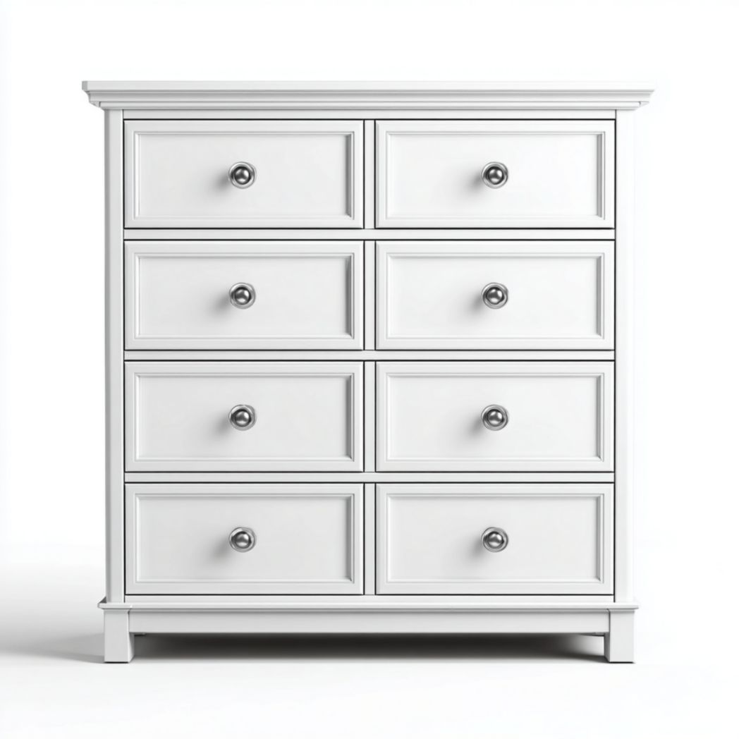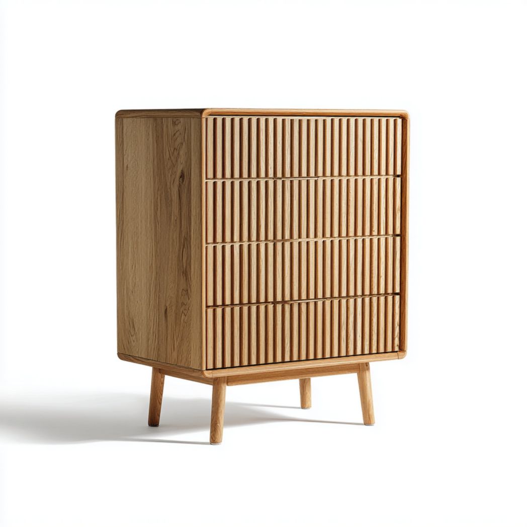 • Matériaux : structure, plateau, tiroirs et étagères en bois d’hévéa ; boutons de tiroirs en métal
